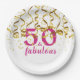 50th Birthday Party|Fifty and Fabulous|Pink White Paper Plate