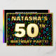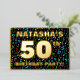 The front of this eye-catching fiftieth birthday celebration/party foil invitation card design features a customisable name, a large number “50th”, the message “BIRTHDAY PARTY!”, and a border. The background of the front has a vibrant, colourful pattern of music notes. The back features personalised details about the event, such as the date, time, place, and any other relevant information. Customisable invitations like these might be a fun way to invite guests to a birthday gathering/party being held in celebration of somebody’s 50th birthday. These might be more meaningful if that person is a musician, a singer, a songwriter, a composer, or otherwise loves music. [~Z0000601]