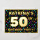 The front of this eye-catching fiftieth birthday party/celebration foil invitation card design features a customisable name, a large number “50th”, the message “BIRTHDAY PARTY!”, and a border. The background of the front features an exciting, colourful starfield pattern. The back features personalised details about the event, such as the date, time, venue, and any other useful information. Editable invitations like these might be a fun way to invite attendees/guests to a birthday gathering/party being held to honour somebody’s 50th birthday. [~Z0000600]
