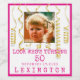 Say Happy Birthday in a fun way with personalised photo, wine or sparkling wine bottle labels. This sample water resistant sticker is shown with a hot pink background colour and font colour, customise the colours. Gold streamers, photograph, name, the date and "Look Who's Turning 50". Use as a unique birthday party invitation or guest favour. To see coordinating products, please visit "The Hungarican Princess - A Boutique" at zazzle.com/hungaricanprincess. Congratulations.