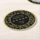 50th Birthday Party Gold/Black Round Pattern Round Paper Coaster