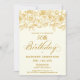 50th Birthday Party Gold Rose Floral Ivory White Invitation