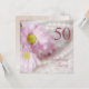 A beautiful delicate image of daisies in soft pink tones. In the background is a string of pearls. The whole effect is soft and old fashioned. A delightful 50th birthday party invitation. Change the back to your own party details