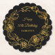 50th Birthday Party Luxe Gold Rose Floral Black Paper Coaster