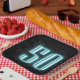 50th Birthday Party Neon Sign on Brick Paper Plate