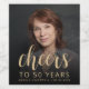 This custom 50th birthday wine label features the guest of honour's personalised photo, name, and birthday, along with the word "Cheers" in elegant gold-coloured calligraphy script. A dark screen helps make the text pop. A great way to celebrate someone who's turning fifty!