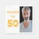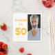 A napkin for a 50th birthday party. Template for your photo. White background and the tex: Cheers to 50. The text is written with a trendy faux gold balloon script.