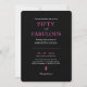 Celebrate in style with these trendy and unique 50th birthday invitations, perfect for a 50 and Fabulous celebration! This modern design features bold pink and black typography on a sleek black background, creating a contemporary yet simple look. The reverse side showcases a matching pink for a stylish finish.