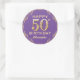 50th Birthday Party Purple and Gold Glitter Frame Classic Round Sticker