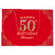 50th Birthday Party Red and Gold Glitter Frame Gift Bag. For further customisation, please click the "Customise it" button and use our design tool to modify this template.