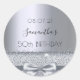 50th birthday party silver sparkle bow metallic classic round sticker