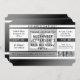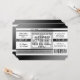 Unique ticket style invitation like an admission to movie or cinema theatre. Black and white graphic shaped corner fiftieth ticket style invitation is customisable for your event or occasion. Use it for a 50th birthday party or any event. Black background with white divisions and sections, with a computer printout style text.