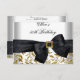 50th Birthday Party White Gold Jewel Black Bow RSVP Card