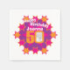 Celebrate a 50th Birthday with these fun pink yellow and purple girls star patterned fiftieth birthday photo and name napkins. Great idea for adding some fun to a 50th birthday party. Reads Happy Birthday Melissa 50, customise with your own birthday girls photo and choice of name. Design by Sarah Trett.