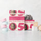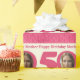 Rich pink red and cream damask fleur de lis 50th birthday add your own photo of your mom wrapping paper. Add your own fiftieths birthday mother's little girl's photo or a fun current day photo to the 0 of 50 years and customize with the birthday message / name of your choice. Currently reads Happy Birthday Mother 50. A great way to customize your moms birthday gifts. Unique design by Sarah Trett.