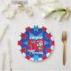 Celebrate a 50th Birthday with this fun blue red and white boys star patterned fiftieth birthday photo and name disposable paper plate. Great idea for adding some fun to a 50th birthday party. Reads Happy Birthday Jasper 50, customise with your own birthday mens photo and choice of name. Ideal to add some fun and a personal touch to a special birthday boys fifty birthday party. Design by Sarah Trett.