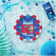 50th birthday photo name blue star paper plate