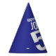 Add your own photo and name party hat. Ideal for a special 50th birthday party celebration. Blue and white design. Other matching birthday items are available. Original graphic art and design by www.mylittleeden.com