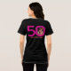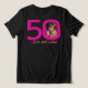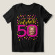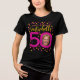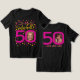Bright colourful confetti random dots birthday 50th party t-shirt. In deep pink, red, coral, golden yellow. Add your own birthday girl's photo in the centre of the 0 in 50 on both sides, great for a past and present celebration photo. Customise with your own fiftieth birthday girls name and wording. Other matching items and milestone birthday years available. Original design by www.mylittleeden.com on zazzle.