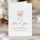 Elegant pink bow accented with pink and blue wildflowers decorate this birthday thank you card. Classic calligraphy spells thank you. Three lines of text let you personalise a thank you statement and your name.