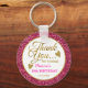 50th birthday thank you favour gift keychain in classy pink glitter and gold typography .