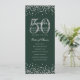 50th Birthday Program Silver Confetti Menu Green Invitation