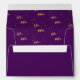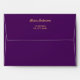 Outside: purple background colour. Back: template for a name and address. Golden text. Inside: purple background and faux gold text written with a trendy hand-lettered style script: hello fifty. With golden dots as decor. A simple and trendy envelope for your 50th birthday party invitations, save the dates or thank you cards,