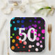 Neon rainbow dot pattern on black background for 50th birthday party.