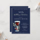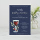 50th Birthday Red Wine Navy Blue Party Invitation