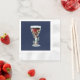 50th Birthday Red Wine Rose Watercolor Navy Blue Napkins. The design has watercolor red wine glass, roses and twigs on a navy blue background.