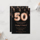 50th Birthday Rose Gold Balloons with Confetti Invitation