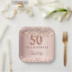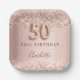 50th birthday rose gold blush glitter name paper plate