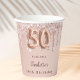 50th birthday rose gold glitter drips monogram paper cups