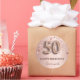 50th birthday rose gold pink stars balloon font classic round sticker