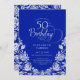 Royal blue silver elegant 50th birthday party invitation. Classy design featuring roses, faux silver foil and typography script font. Trendy invite card perfect for a stylish female bday celebration. Personalise with your own details. Can be customised to any age. Printed Zazzle invitations or instant download digital printable template.