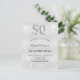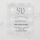A modern, stylish and glamourous invitation for a 50th birthday party. A faux silver looking background, decorated with glitter dust. Personalise and add your name nad party details. Number 50 is written with a balloon style font, script.