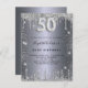 A modern, stylish and glamourous invitation for a 50th birthday party.  A faux silver looking background, decorated with glitter dust.    Personalise and add your name nad party details.  Number 50 is written with a balloon style font, script.