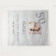 A welcome tapestry for a glamourous 50th birthday party. A faux silver metallic looking background decorated with faux glitter dust. Personalise and add a high quality photo, name and date. Number 50 is written with a balloon style font.