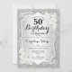 50th Birthday Invitation. Elegant floral design in silver and white. Features faux glitter silver stripes, white roses stylish script font and confetti. Perfect for a glam birthday party.