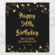 50th Birthday Stylish Black Gold Stars Name Wine Label