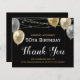 Elegant streamer confetti highlights on the top border. Faux glitter gold and silver balloons artwork. All text is adjustable and easy to change for your own party needs. Great elegant guest thank you card birthday celebration template design.