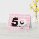 Roll of white toilet paper on pink plaid background for 50th birthday.