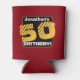 50th Birthday with Custom Name Striped Number A05 Can Cooler