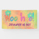 Have fun for a birthday with this WooHoo Birthday Banner. Customise for a year and name (as well as a different event). The text "WooHoo" is on a multicolor orange, coral and yellow background with magenta and teal green flowers. The topography is hand drawn and is multicolors of orange, magenta, blue green and yellow.