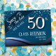 Save the date high school or Class reunion postcards. Blue theme with faux foil silver 50th with bold white text. All text is customisable except for the 50 and can be changed for your own party needs. Class banners can also be found in my shop.