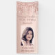 A vertical banner for a girly and glamourous 50th & Fabulous birthday party. A faux rose gold gradient background with an elegant faux rose gold, pink glitter drips, paint dripping look. Personalise and add a photo of the birthday girl. The text: Templates for text, name and a date. Perfect both as a welcome banner or as party decor.
