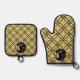 50th Gold Wedding Anniversary Oven Mitt & Pot Holder Set - featuring gold and black glitter with floral black glitter and the Golden glitter couple, this Oven Mitt & Pot Holder Set can be an unique, elegant, chic 50th Wedding Anniversary gift. This design is made in this way in order to reflect the beautiful circle of life!