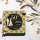 50th Gold Couple Wedding Anniversary Glitter Square Paper Coaster