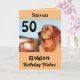 Another birthday? Yes, it's true! Celebrate a fun 50th "golden" birthday with cheer up wishes in a golden retriever card with a personalised name. The birthday photo shows a champion golden retriever with a closeup endearing expression. Golden owners will smile at the funny verse inside about "birthdays are golden."