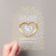Gold coloured confetti dots with gold heart effect 50 year wedding anniversary invitations. Simple modern heart and random gold look confetti dots 50th wedding anniversary design. Other matching golden wedding items are available or can be created by request. © Original graphics and design by Sarah Trett for www.mylittleedenweddings.com on zazzle.